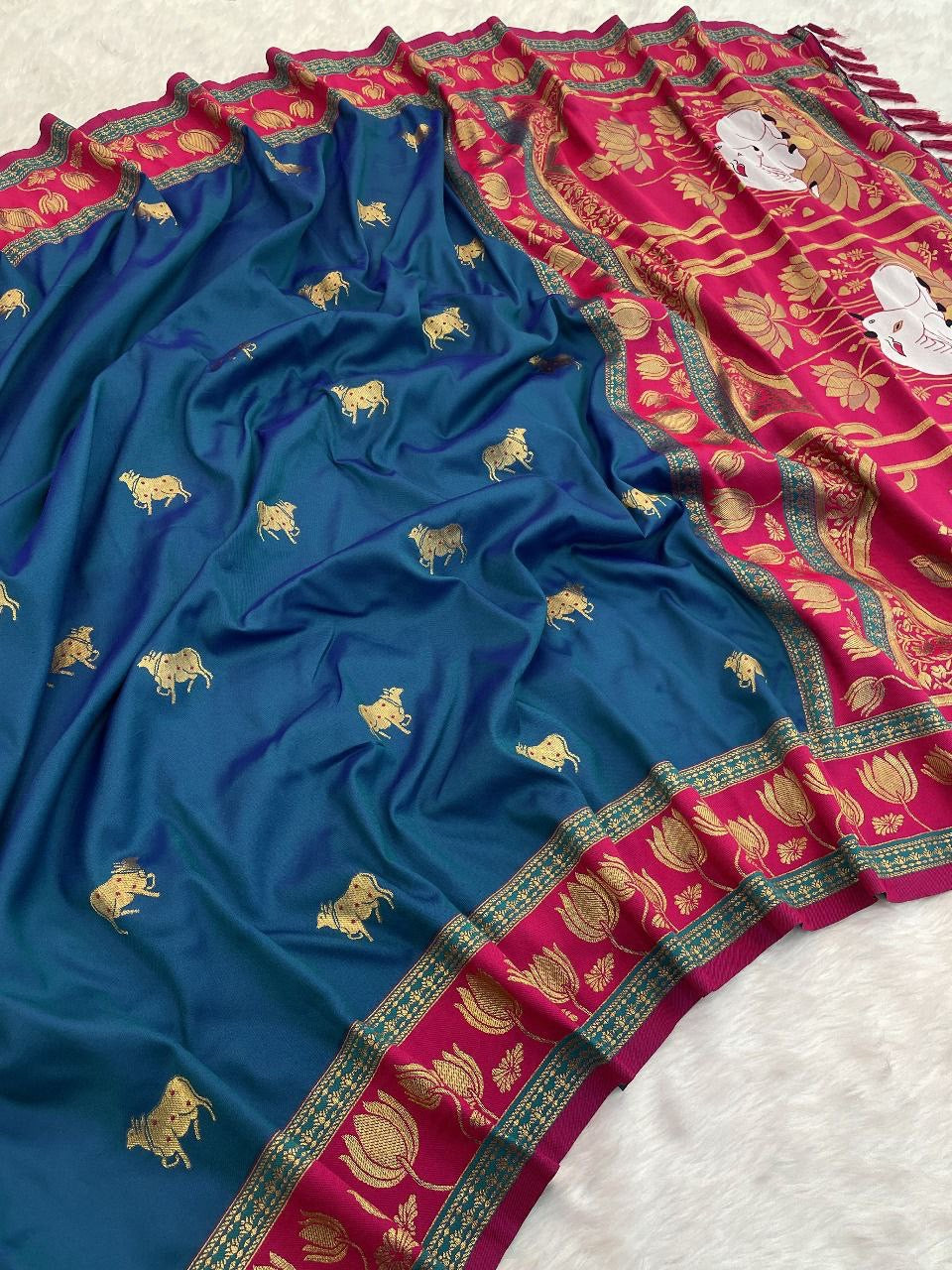 Blue Soft Rajwadi Pashmina Silk Weaving Saree